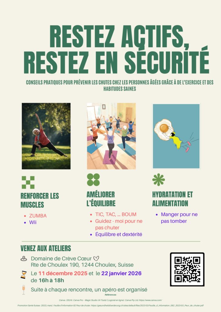 En collaboration avec la Haute école de santé de Genève (HEdS), le Club des aînés de Choulex organise une présentation de la prévention des chutes, suivie de deux ateliers pratiques.