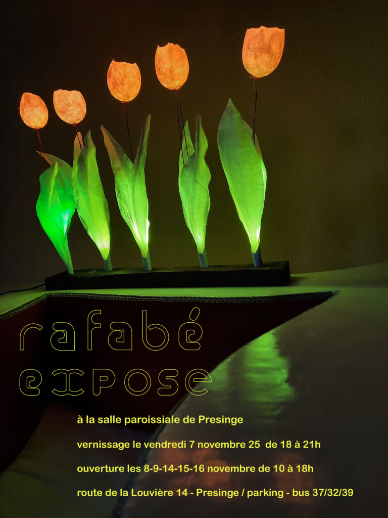 Salle de paroisse de Presinge. Vernissage le vendredi 7 novembre de 18h à 21h.